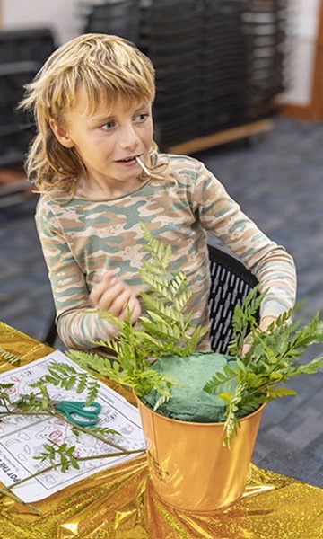 Did you know that the first Macy’s Thanksgiving Day parade in 1923 did not feature any giant balloons but it did have animals from the Central Park Zoo march down Broadway? The famous balloons were introduced in 1927 and did you know they were then released into the sky after the parade? It’s also true that Snoopy was the most featured balloon in the parade’s history and there was no turkey served at the first Thanksgiving. Area students in grades 3-6 learned all this and more when the Youth Committee of the Garden Club of Long Beach Island met on Wednesday November 20, 2024 at the LBI branch of the Ocean County Library-Surf City to create a harvest floral arrangement for Thanksgiving.