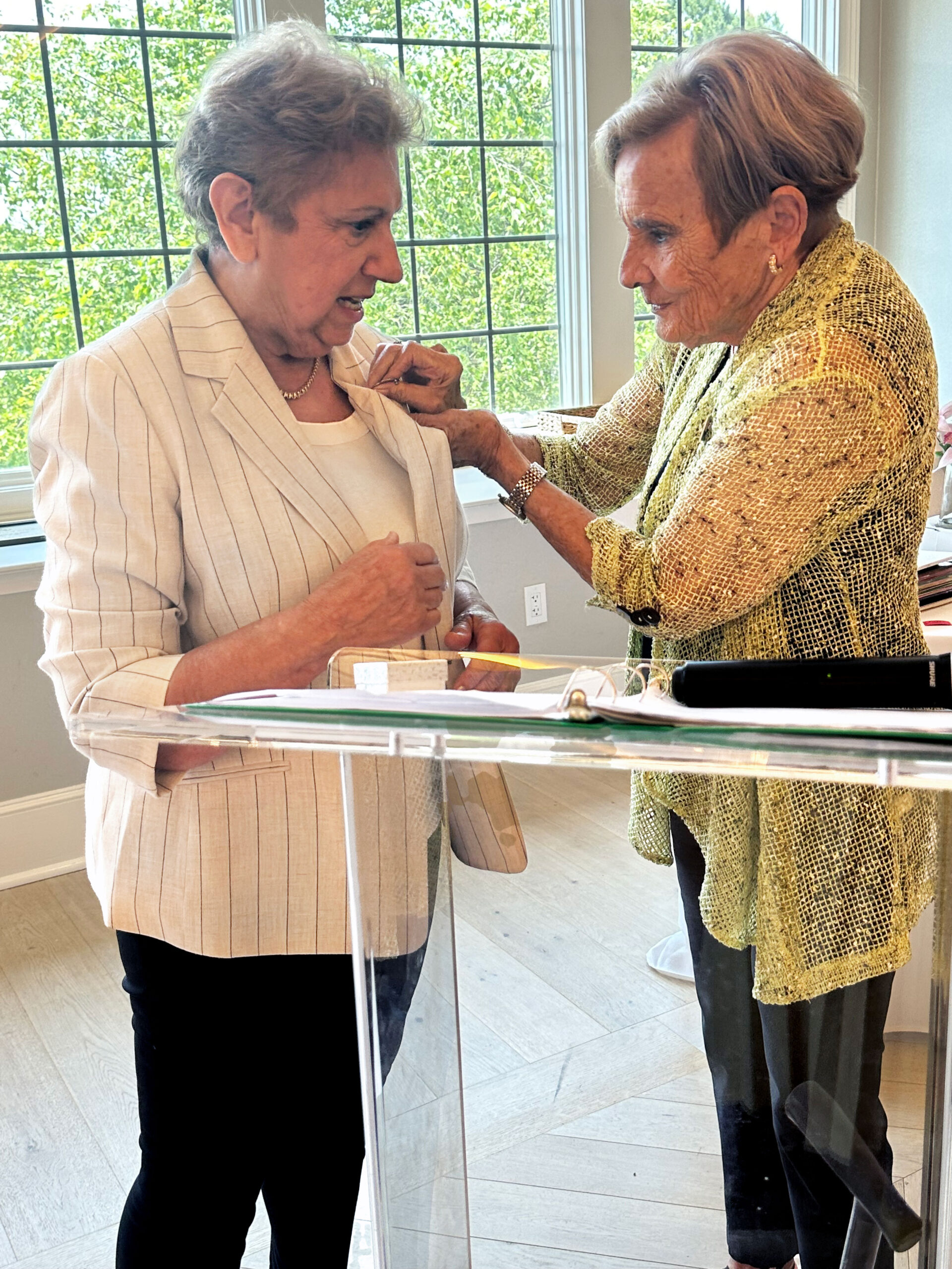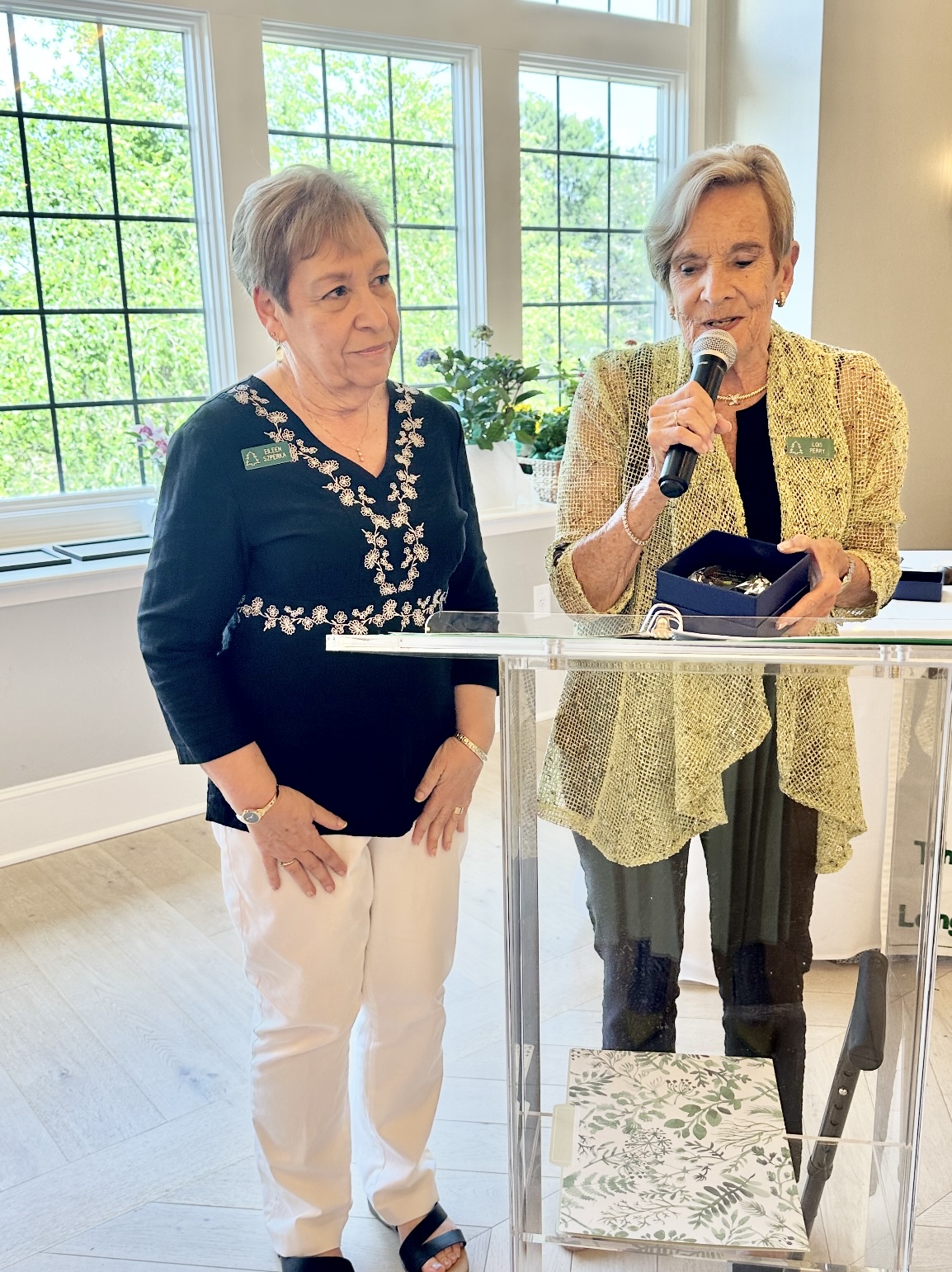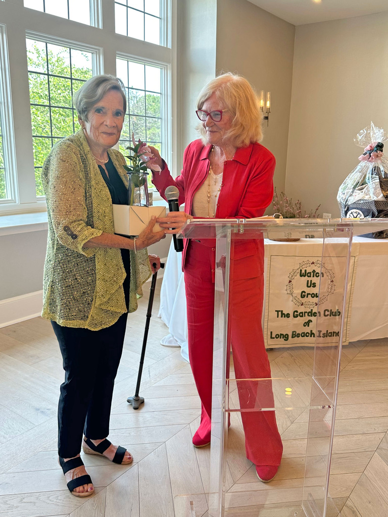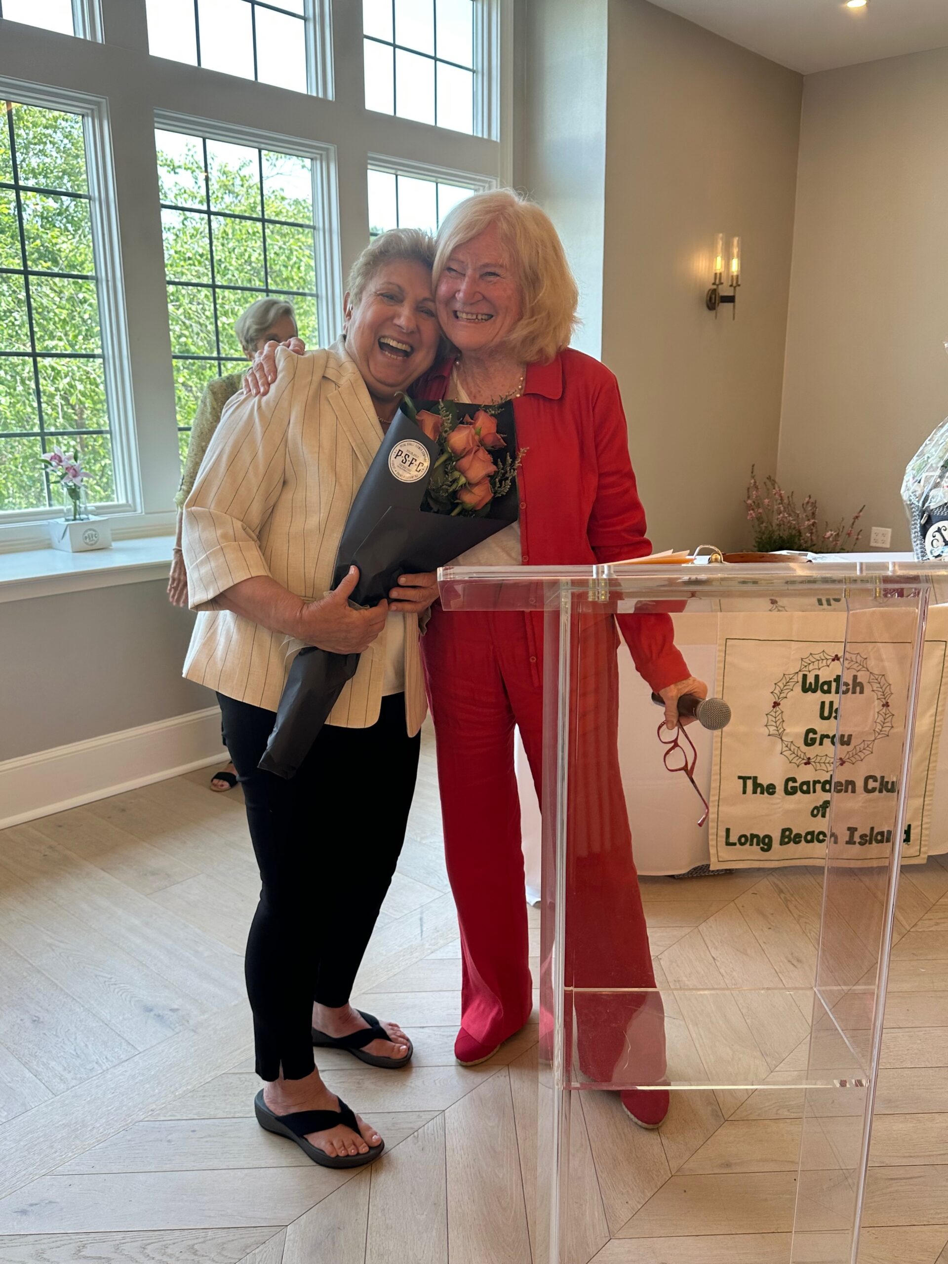 (l to r) Eileen Szperka, Assistant Treasurer, being awarded the 2025 President’s Award for outstanding contributions to the Garden Club!