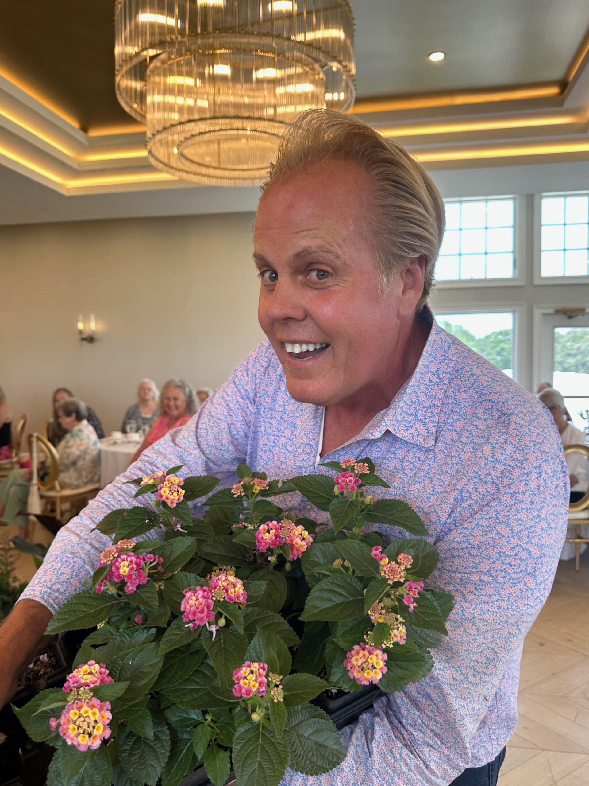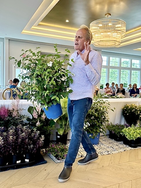 After lunch concluded, Kent Russell showcased his remarkable talents as the esteemed Garden Guru through a captivating performance. Attendees reveled in his creative flower presentation and appreciated his lively energy and sharp wit! Everyone thoroughly enjoyed his imaginative flower presentation, especially his delightful energetic and quick sense of humor!