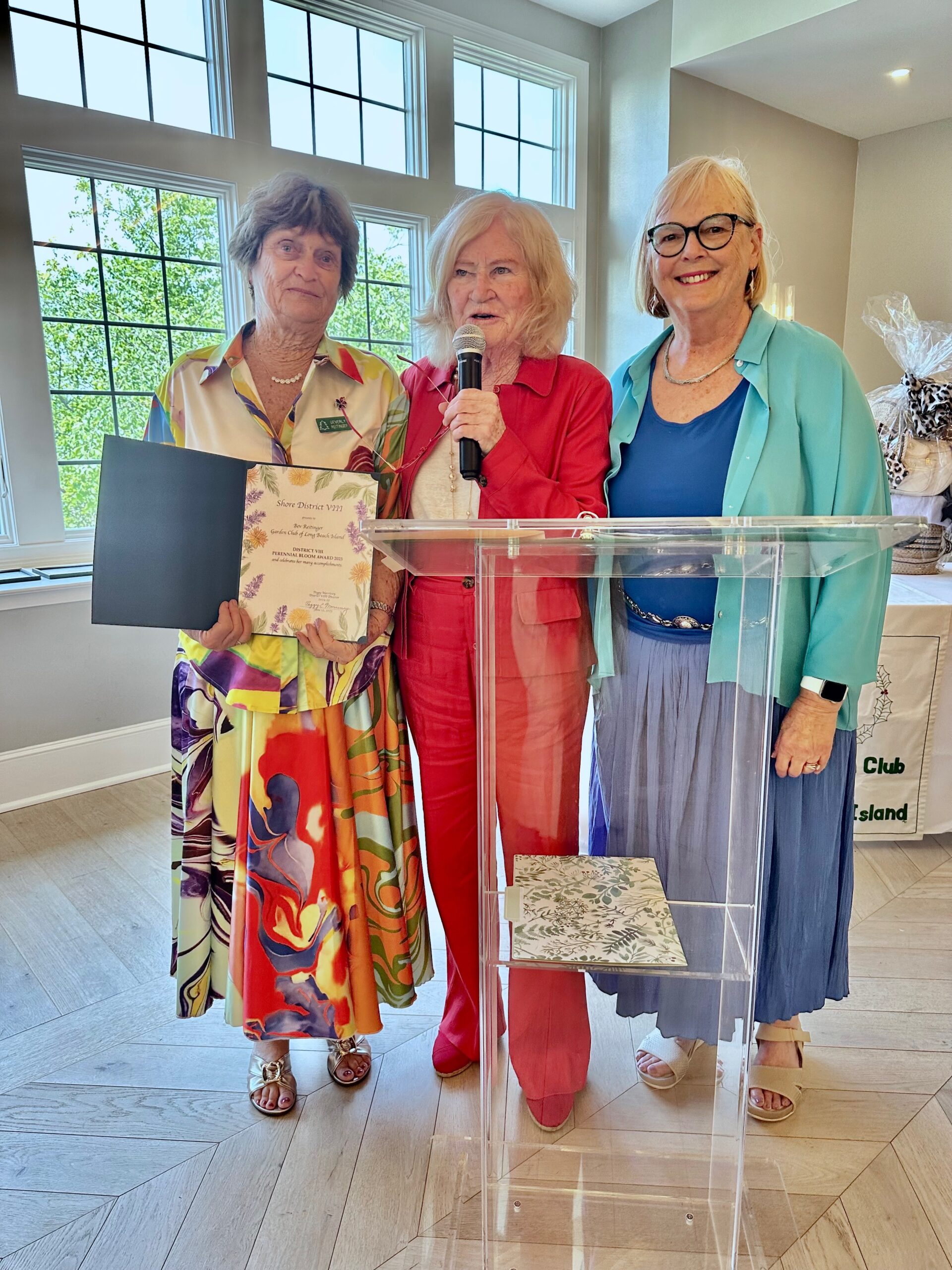 (l to r) President Lois Perry, Peg Morrissey, VP GCNJ & NJGC Awards Chair and Barbara Duff, GCLBI Awards Chair. Barbara Duff compiled a book featuring all our events, which contributed to us receiving the Garden Club of the Year Silver Trophy from the Garden Club of LBI!!