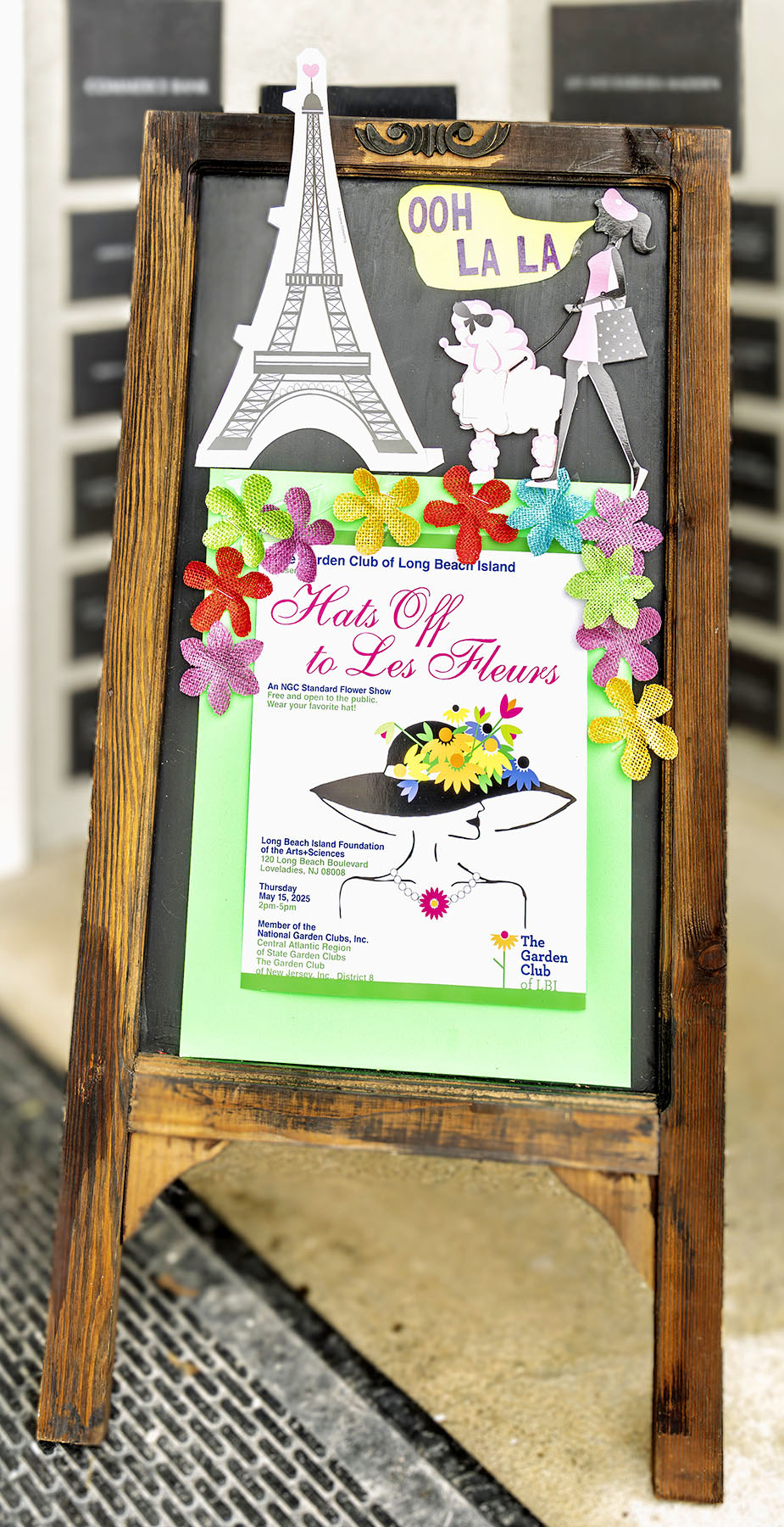 The Garden Club of LBI’s flower show, Hats off to Les Fleurs, is now one for the Club’s record book. The May 15, 2025 flower show was held at Long Beach Island Foundation of the Arts and Sciences in Loveladies. Free and open to the public, the show brought many visitors and guests to meander among the visions of beautiful flowers and displays while violin music played in the background along with light refreshments that were served. Since 1969, the year of our very first “Flower Show” our club has continued in this endeavor.