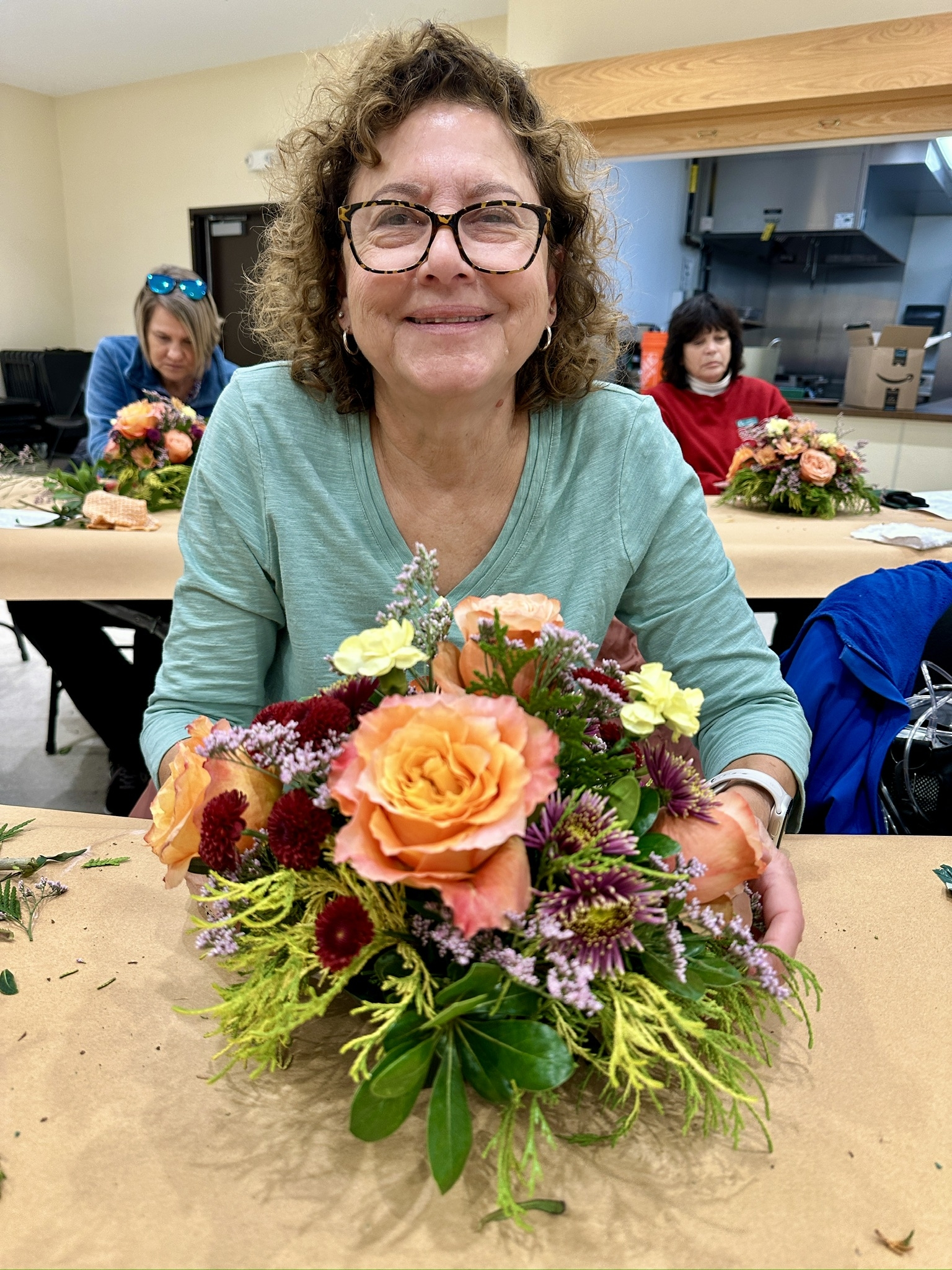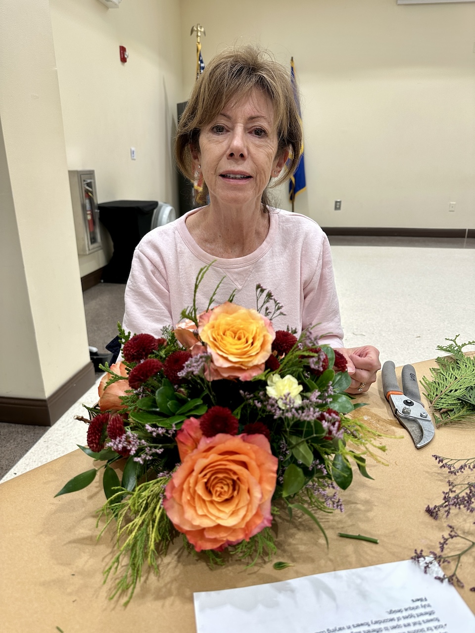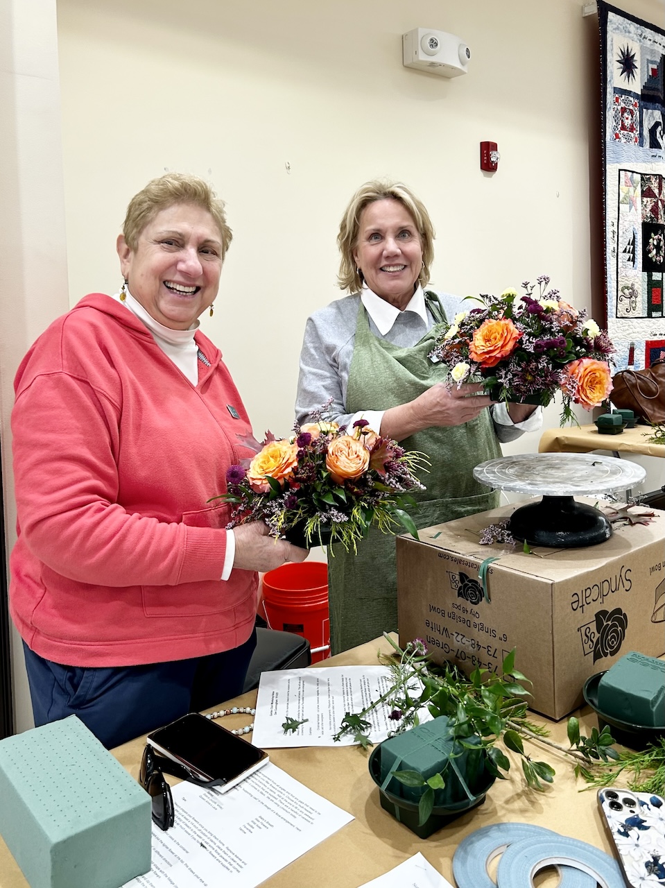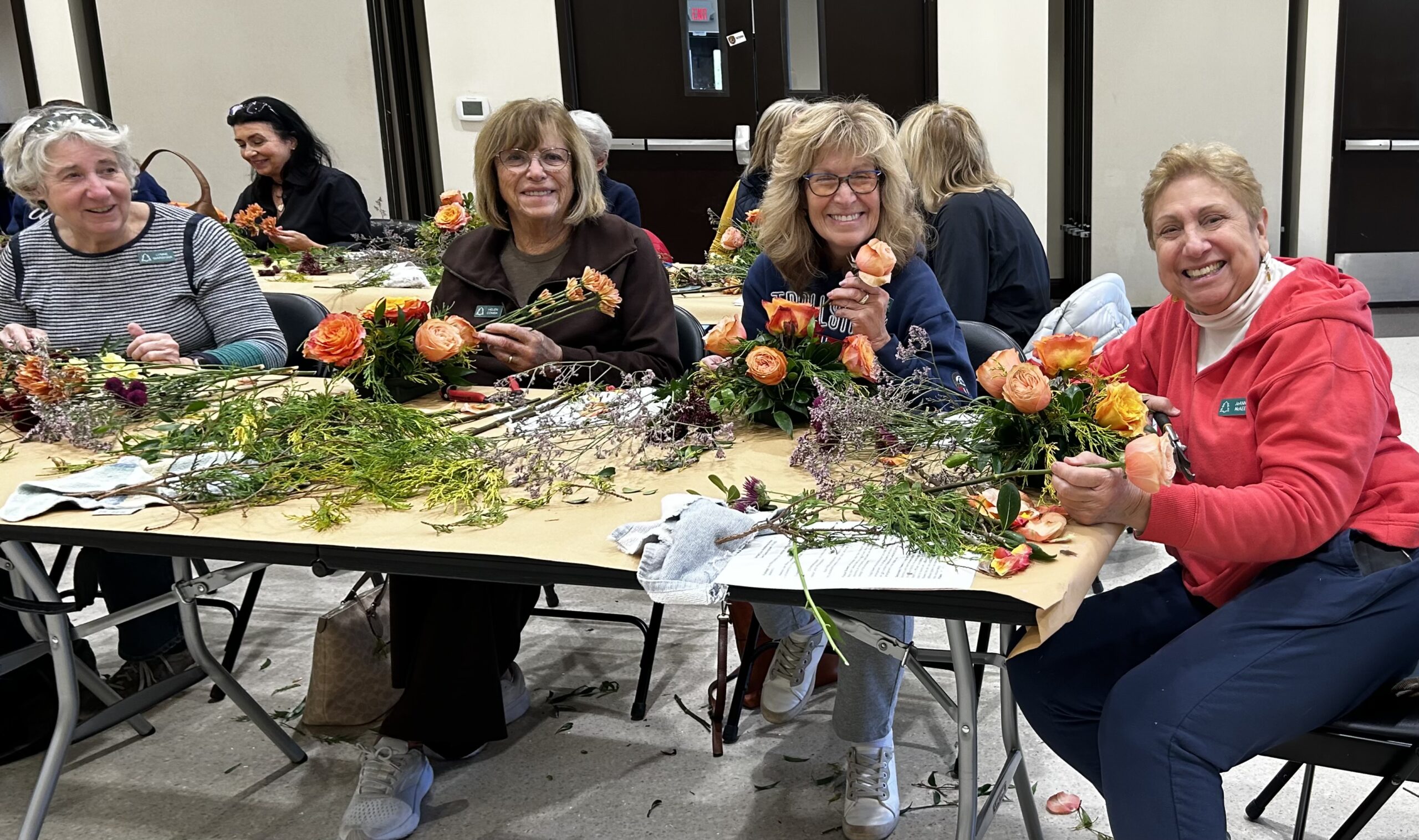 The Garden Club of LBI held a floral arrangement workshop for its members on Friday, November 14, at the Bay Avenue Community Center, led by member Gen Cunningham and assisted by Barb Cona, Danielle Haggerty-Perez & Joanne Orlandi. Members explored the fundamentals of floral arrangement and design, creating rounded centerpieces featuring a stunning color palette in beautiful foil. The arrangements were enhanced with lovely roses and seasonal autumn blooms, resulting in creations that brought smiles to everyone’s faces!! Each went home with their wonderful creations.