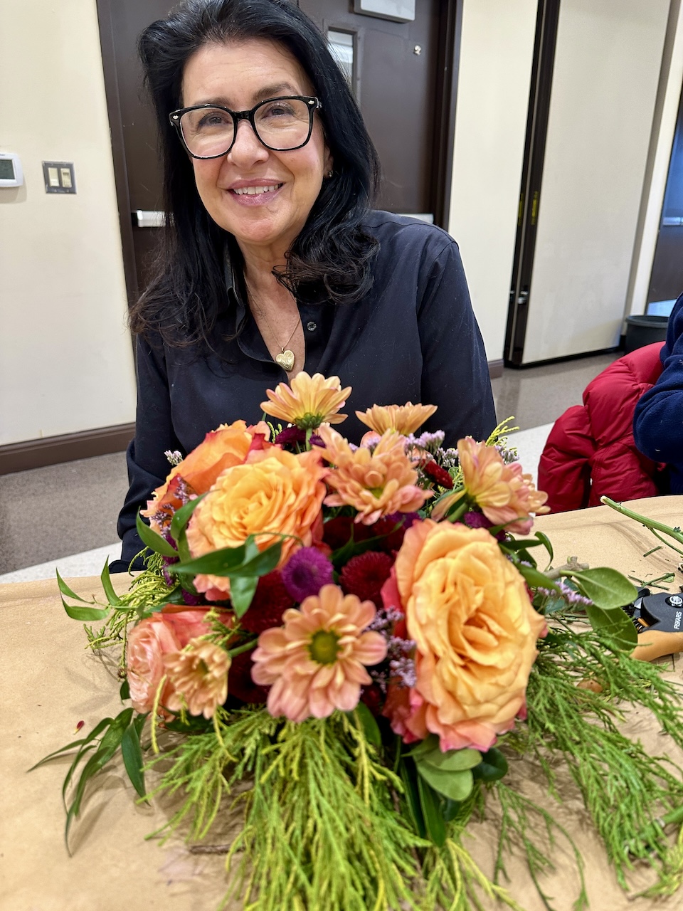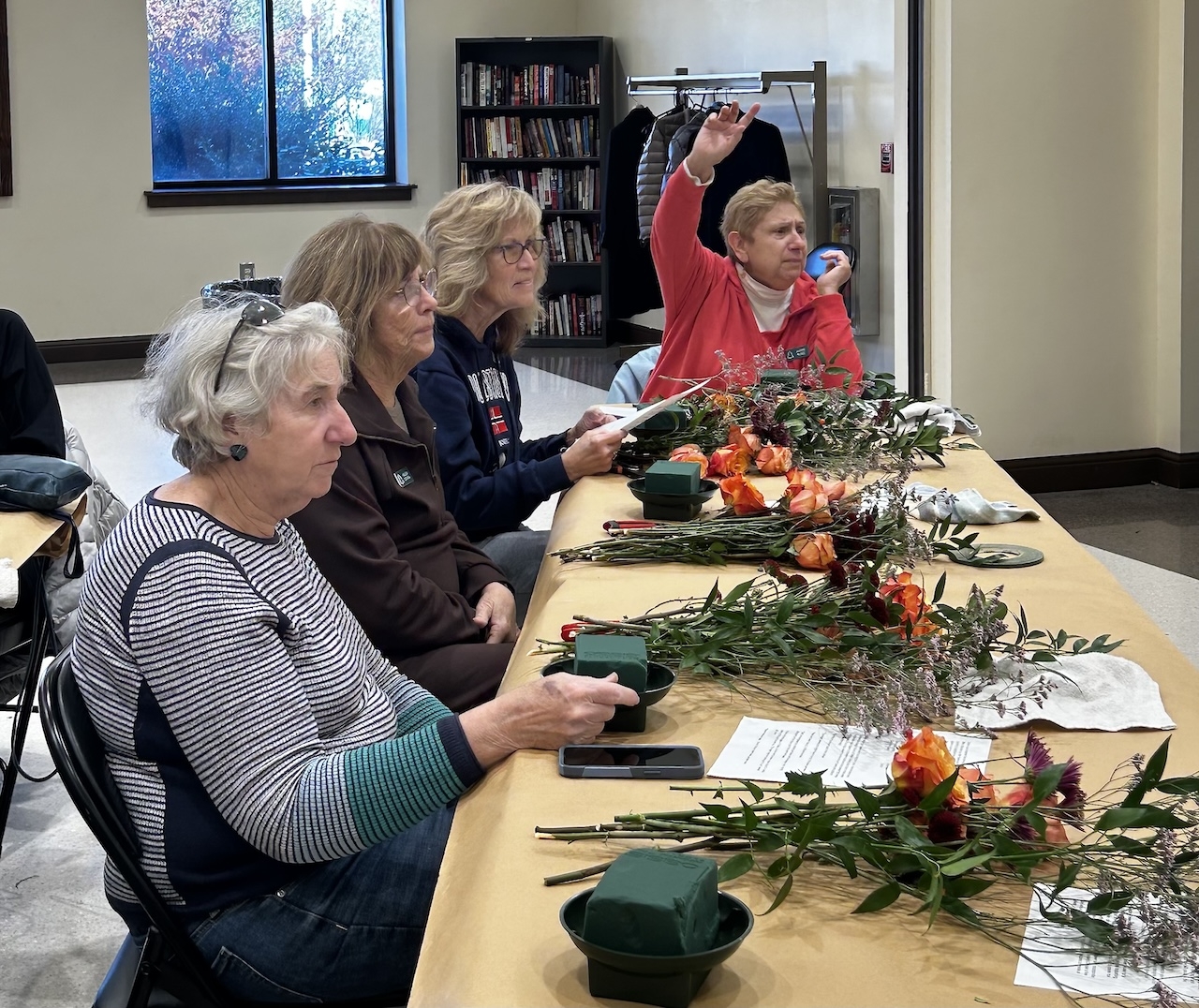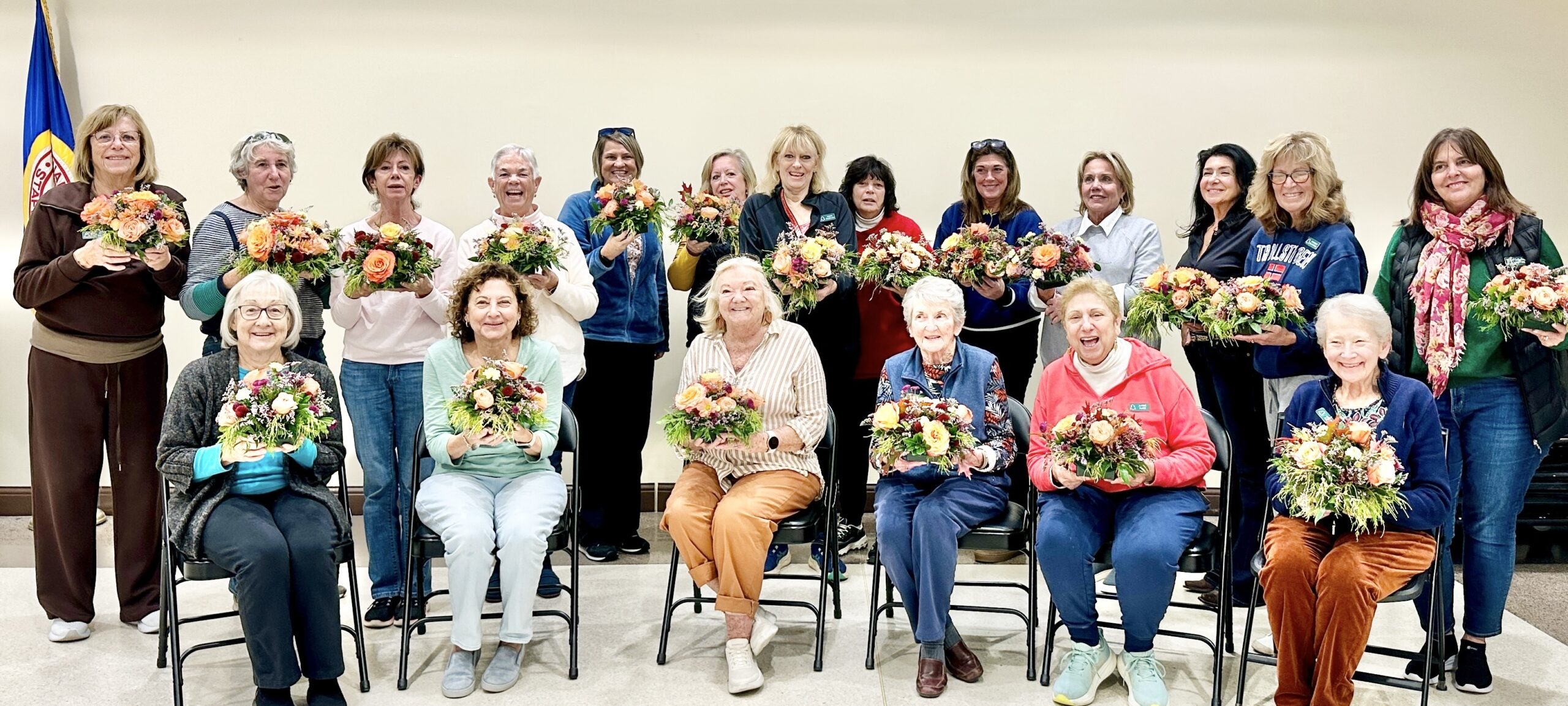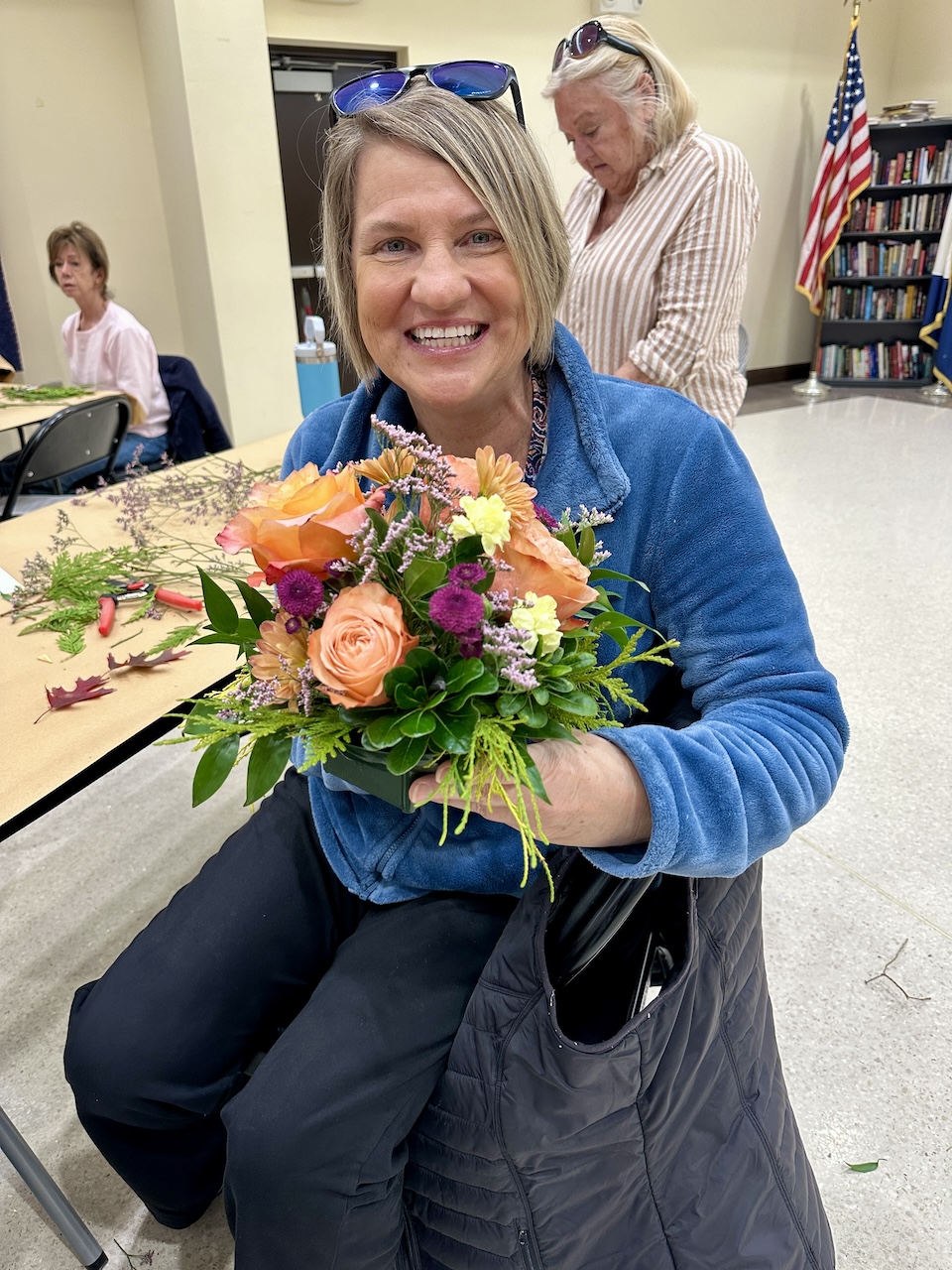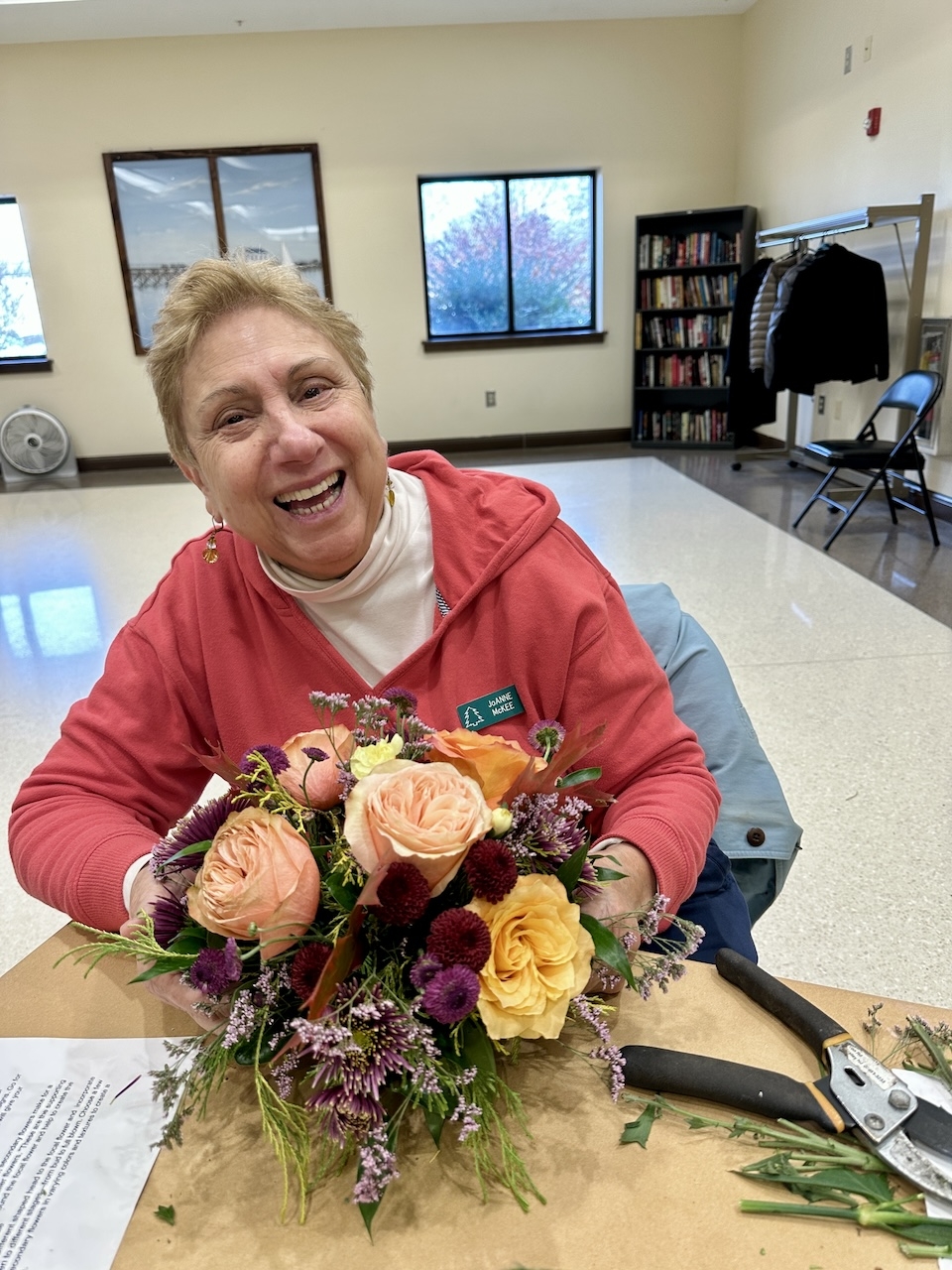 The Garden Club of LBI held a floral arrangement workshop for its members on Friday, November 14, at the Bay Avenue Community Center, led by member Gen Cunningham and assisted by Barb Cona, Danielle Haggerty-Perez & Joanne Orlandi. Members explored the fundamentals of floral arrangement and design, creating rounded centerpieces featuring a stunning color palette in beautiful foil. The arrangements were enhanced with lovely roses and seasonal autumn blooms, resulting in creations that brought smiles to everyone’s faces!! Each went home with their wonderful creations.